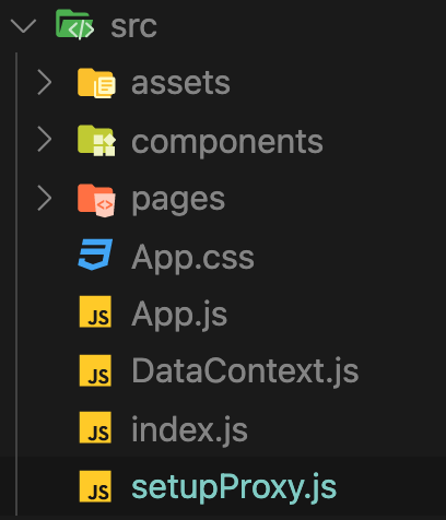 CRA로 개발 중일 경우, http-proxy-middleware 라이브러리를 설치하고, setupProxy.js 라는 파일을 src 폴더 내에 만들고 아래와 같이 코드를 작성합니다.